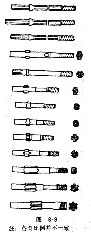 釬尾是聯(lián)結(jié)鑿巖機(jī)和釬桿的橋梁,是釬子插入鑿巖機(jī)的部分,它直接承受鑿巖機(jī)的沖擊能和回轉(zhuǎn)扭矩,并把其能量傳遞給釬具。從使用形式上,可把釬尾分為兩種類型,即一種是與釬桿連成一體的(參見圖6-1),一種是接桿···